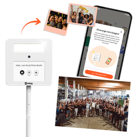 Además del fotomatón, lanzamos algo muy especial: ¡nuestra App KRUU! Los invitados pueden subir, valorar, compartir y comentar sus propias fotos. ¿Lo mejor? Después del evento, también encontrarás todas las fotos del fotomatón en la app.