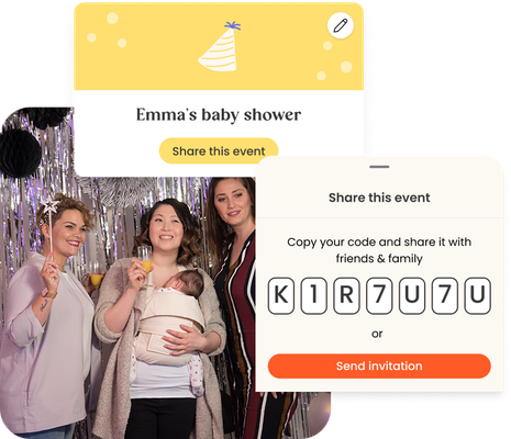 Condividi facilmente il codice dell'evento con i tuoi ospiti tramite app, e-mail o social media. Per accedere alla galleria online è necessaria l'app.