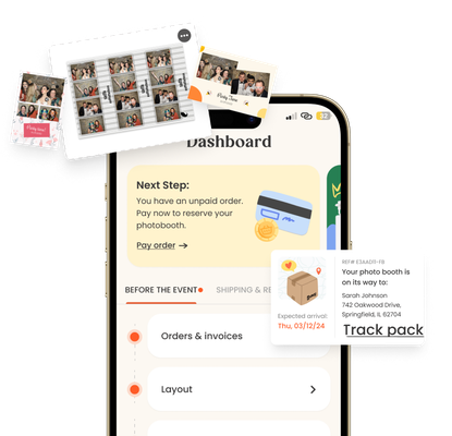 Nel portale clienti dell'app KRUU hai il pieno controllo della tua prenotazione. Qui puoi facilmente impostare l'indirizzo di consegna e ritiro, selezionare direttamente i design e condividere le foto della tua fotobx con tutti gli ospiti.