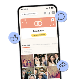 Naast onze photobooth stond er in 2023 nóg iets bijzonders op de planning. Omdat we weten hoe belangrijk het is om bijzondere herinneringen voor altijd vast te leggen, hebben we de KRUU App gelanceerd. Daarmee kunnen alle gasten hun eigen foto's uploaden, liken, delen en erop reageren. En het mooiste? Na het event worden ook de foto's uit de photobooth automatisch aan de app toegevoegd – zo heb je alle highlights handig op één plek verzameld.